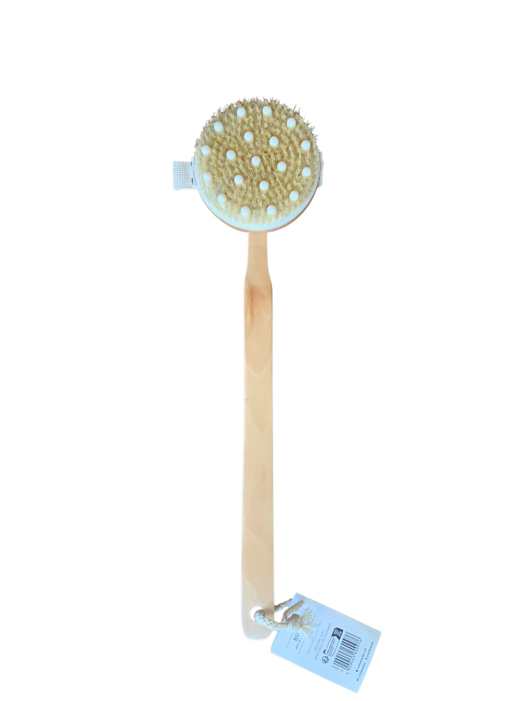 Brosse massante, manche amovible, dentures en silicone, manche en bois